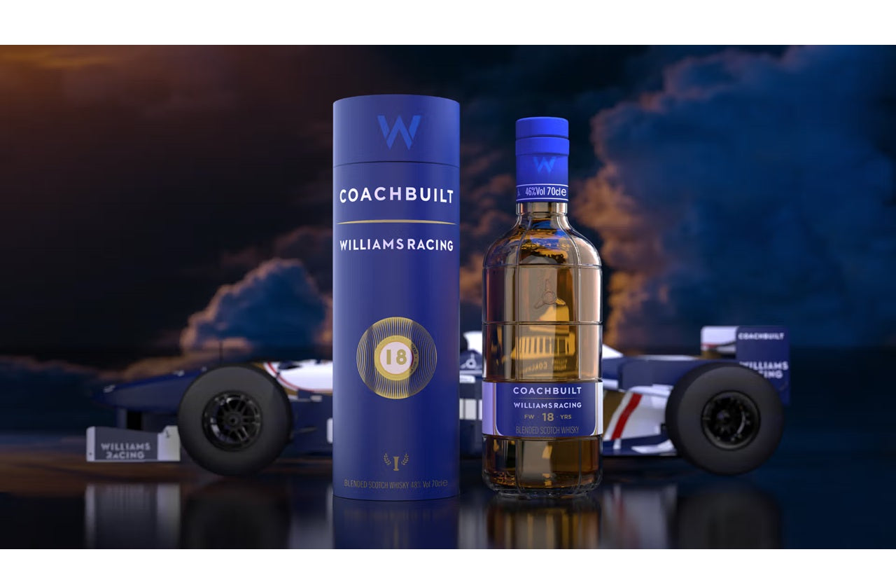 Founded by George Koutsakis and Jenson Button, Coachbuilt Whisky launched its first limited edition with Williams Racing. Inspired by the iconic Williams FW18, this 18-year-old blended Scotch celebrates one of Formula One’s greatest cars—inside and out.
